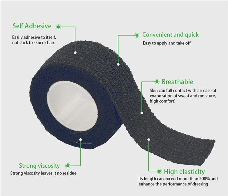Карактеристики на лента за зафаќање со пиштол за тетоважа1. Различни сценарија за употреба. Може да се користи како чорап -лента за фудбалот за да ги поправи чуварите на шин, кохезивните завои за коњи за поддршка на коњските зглобови и кохезивни завои за зглобот да ги заштити зглобовите и да спречи повреди.
